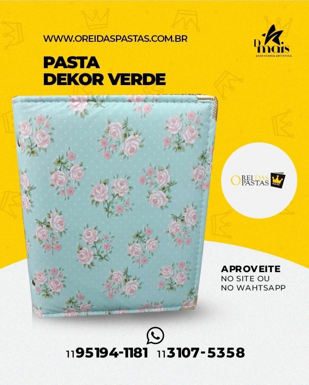 0068 Pasta de Louvor n05 dekor verde BIBLIAS PASTA PARA HINOS Nº05 PARA CORAL E CONJUNTOS MEDIDA: 25 LARGURA X 33 CM ALTURA (UMA SULFITE INTEIRA) 50 PLÁSTICOS PARA 100 HINOS ACABAMENTO COM CANTONEIRA DOURADA ATEND... R$28,00