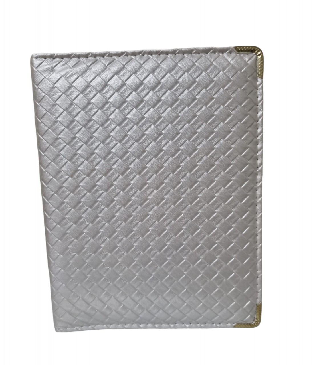 0013 Pasta para hinos nº04 trançado champanhe PASTA P/ CORAL Pasta para Hinos N.04 Trançado Champanhe Cantoneiras douradas 50 Plásticos para 100 hinos   Medida: 21cm largura x 27cm altura (Tamanho médio, maior q... R$21,00