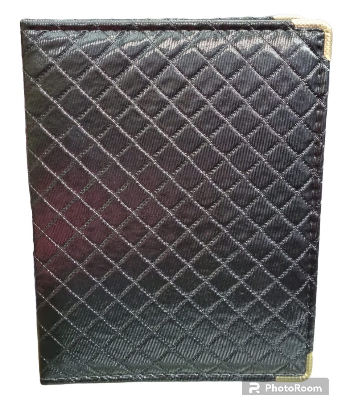 0061 Pasta de louvor n04 quadriculado preto brilhoso PASTA P/ CORAL Pasta para hinos nº04 Quadriculado preto brilhoso Medida: 20 cm (largura) x 26 cm (altura) - pouco maior que metade de uma folha A4 Capacidade: com 50 plásticos para 100 hinos Aca... R$19,00